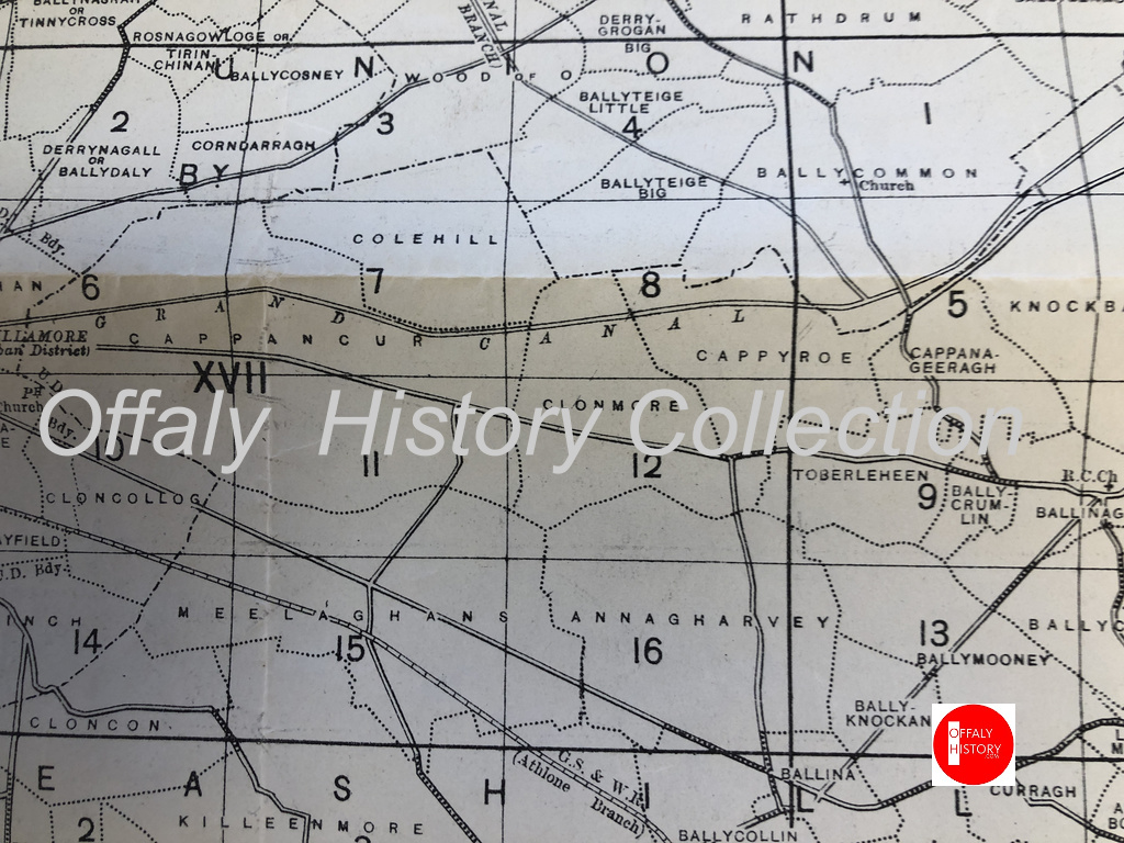Map of the townlands from Ballycommon to Tullamore. There are over 1,000 townlands in Offaly. See townlands.ie for more.Your walk along the canal from Ballycommon will see you visit Cappyroe, Clonmore and Cappancur