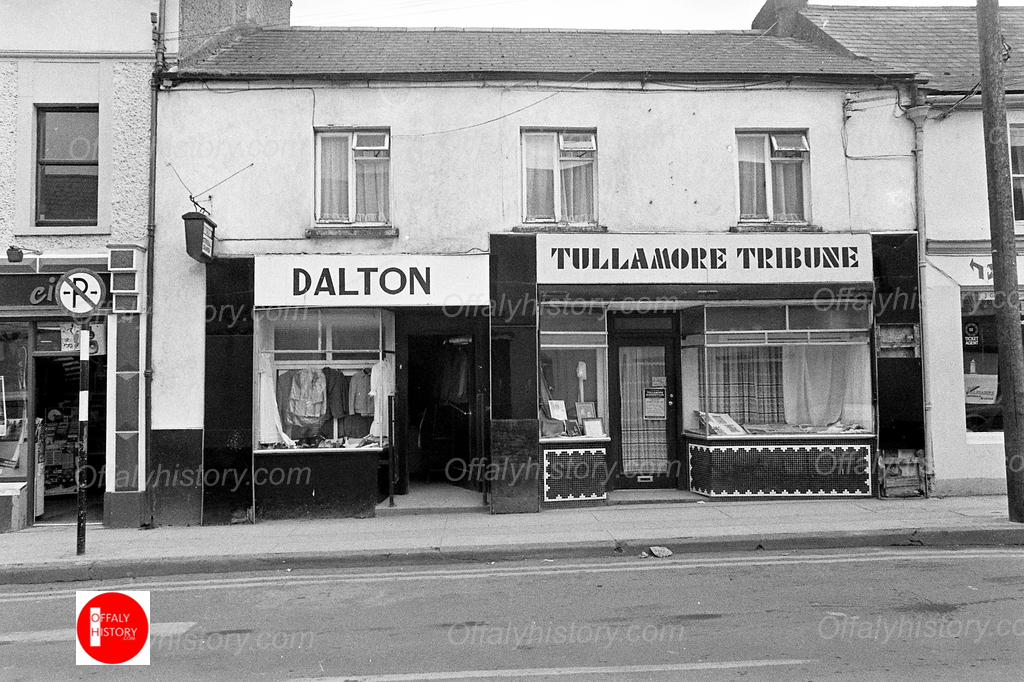 The first office of the Tullamore Tribune in Church Street, Tullamore. Beside Mrs Dalton’s, then the only used clothes shop in Tullamore. Picture about 1980.Tullamore Superstars on the poster may help to date this one. It be may be Ray Quinn’s music store to the left.