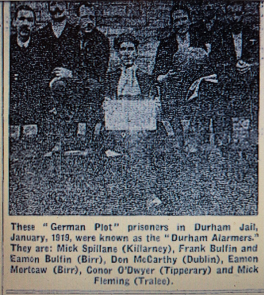 Following the release of republican prisoners from internment in late 1916, Eamon and Frank were involved in establishing the republican movement in south Offaly. They were arrested as part of the German Plot in the Summer of 1918 and imprisoned in Durham Gaol. Eamon was later deported to Argentina where he acted as an emissary for the republic during the War of Independence.