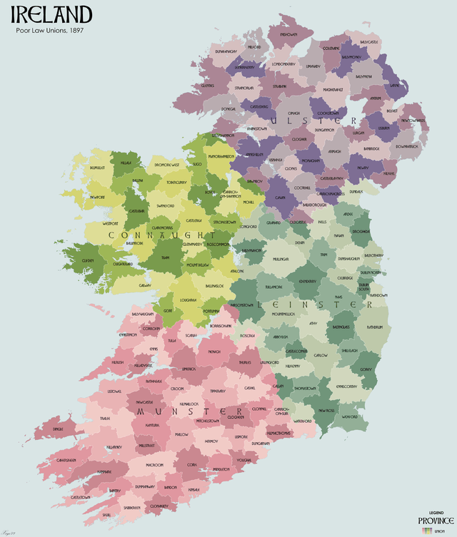 The Poor law unions at the end of the nineteenth century. Courtesy Wiki Commons